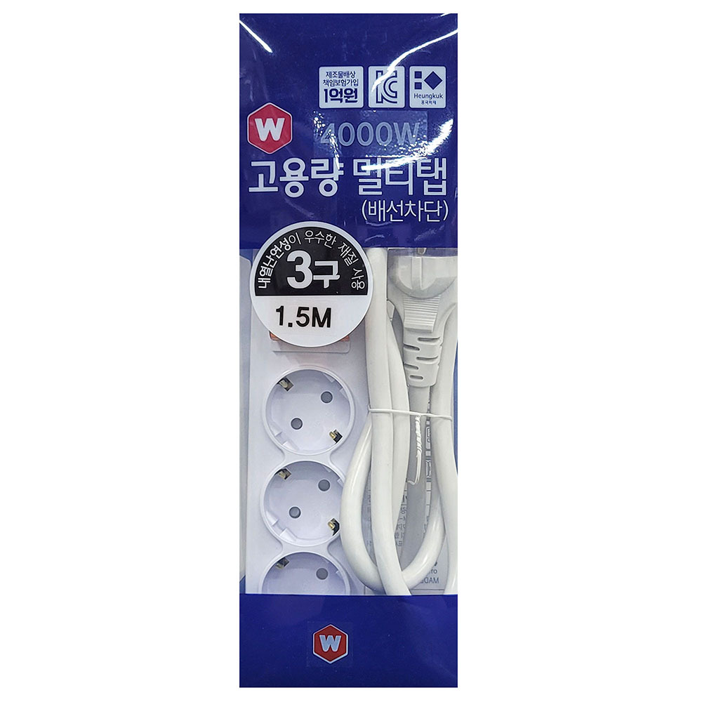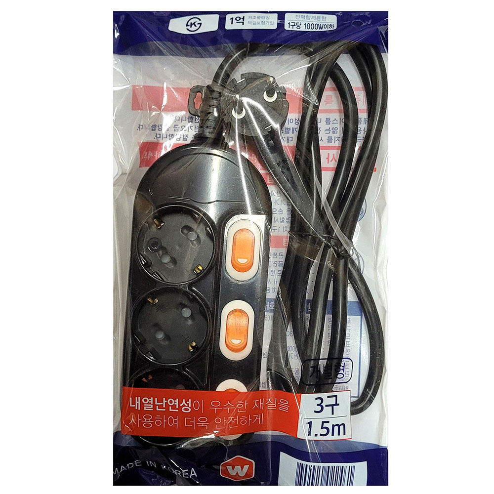 - 내열 난연 안전소재 개별스위치 절전 멀티탭 3구 1.5M