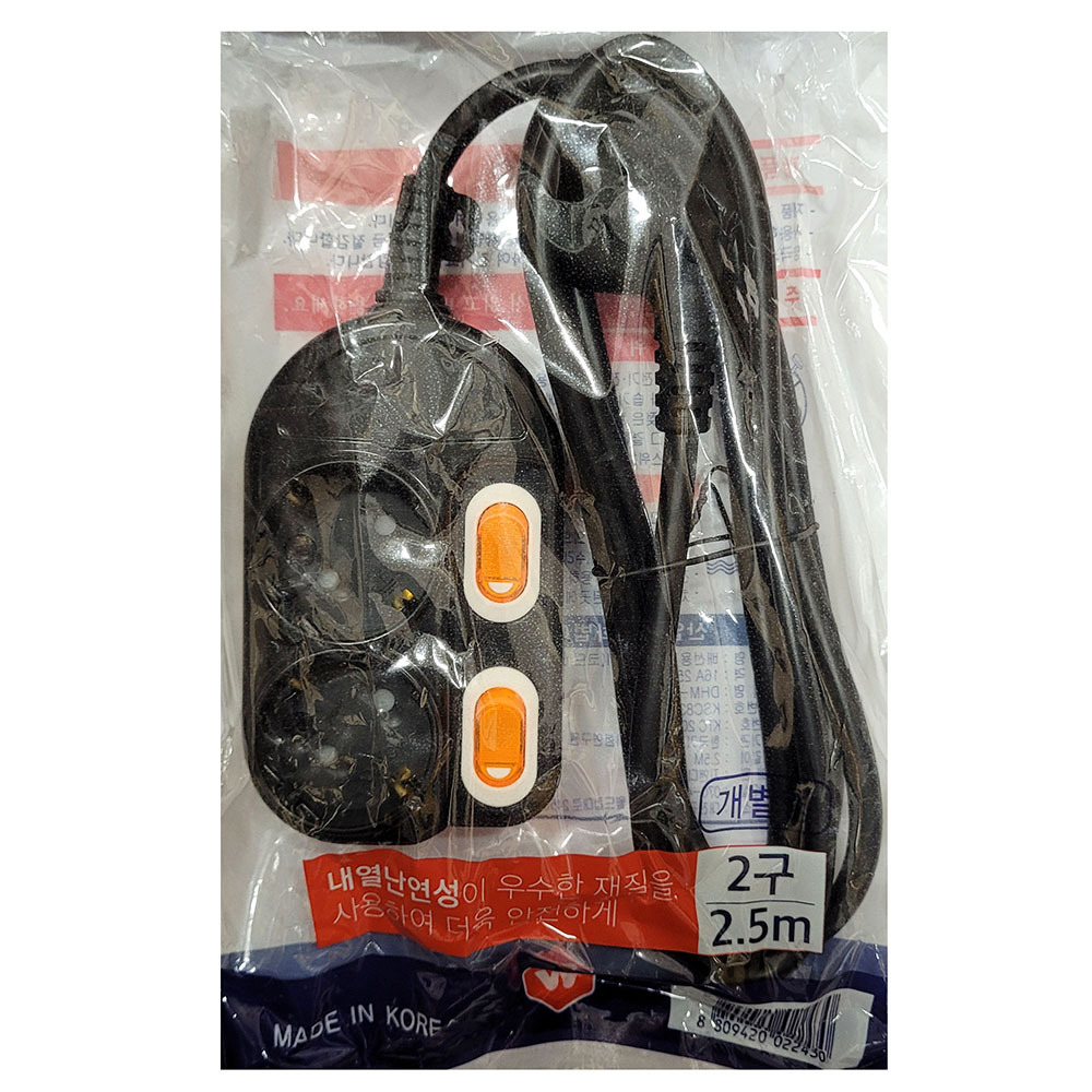 - 내열 난연 안전소재 개별스위치 절전 멀티탭 2구 2.5M