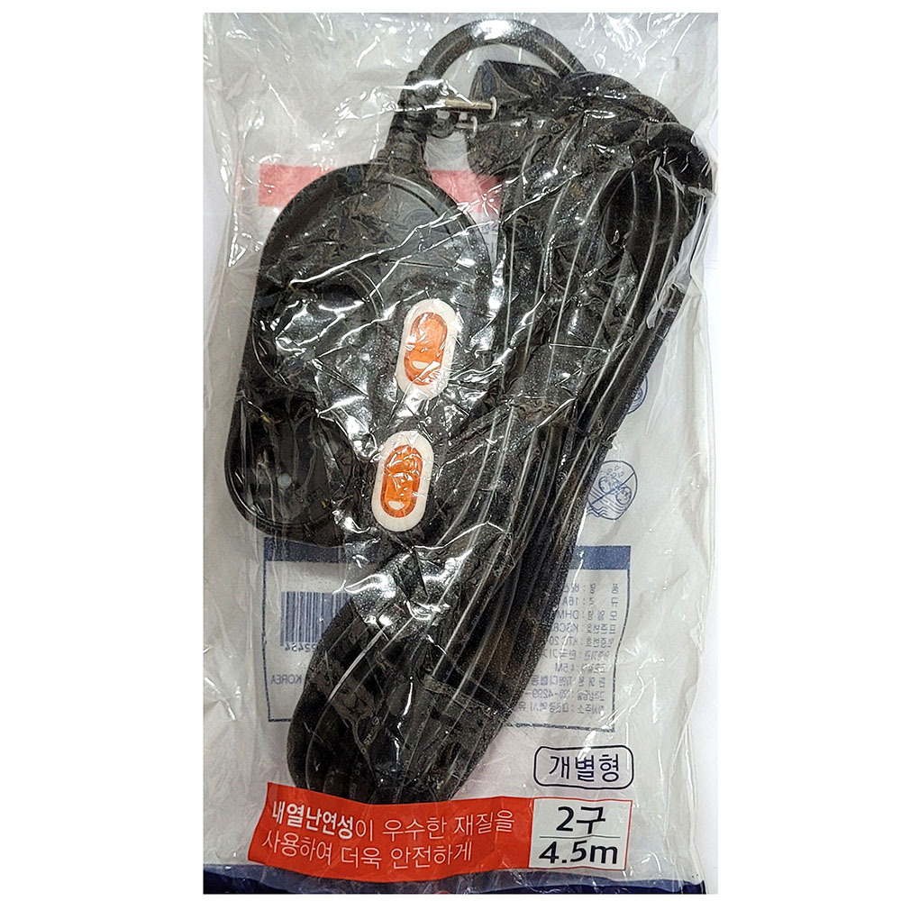 - 내열 난연 안전소재 개별스위치 절전 멀티탭 2구 4.5M
