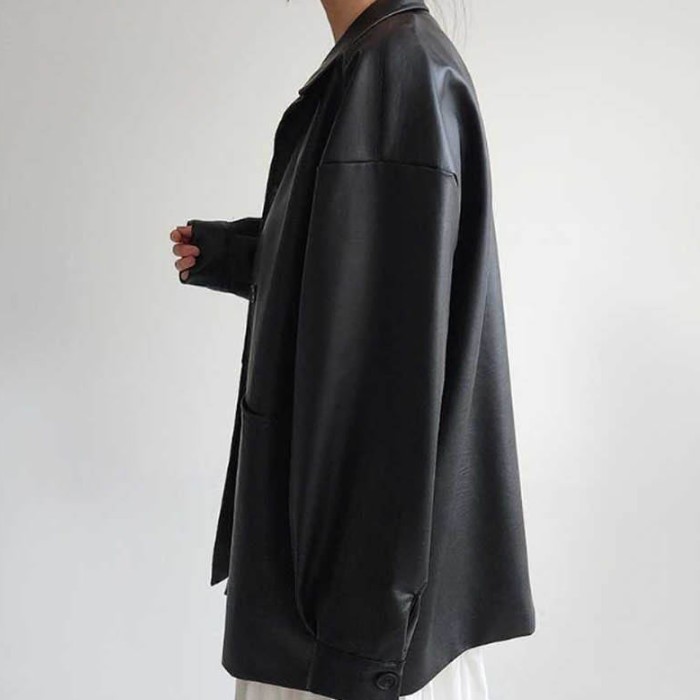 - 바이크 아우터 부드러운 레더 재킷 카라넥 오버핏