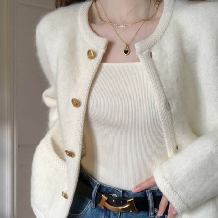 고급스러우면서 세련된 하객룩 편안한 라운드넥 가디건