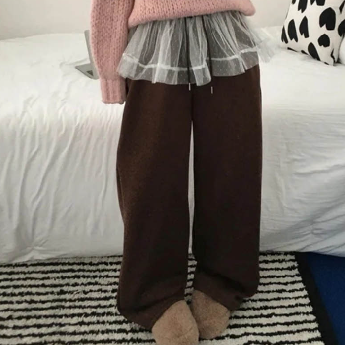 레이스 프릴 팬츠 레이어드 바지 자연스러운 체형커버
