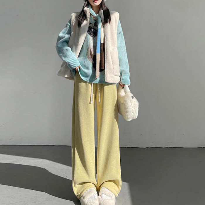 캐주얼 와이드 바지 허리밴딩 편안한 활동감 기모팬츠
