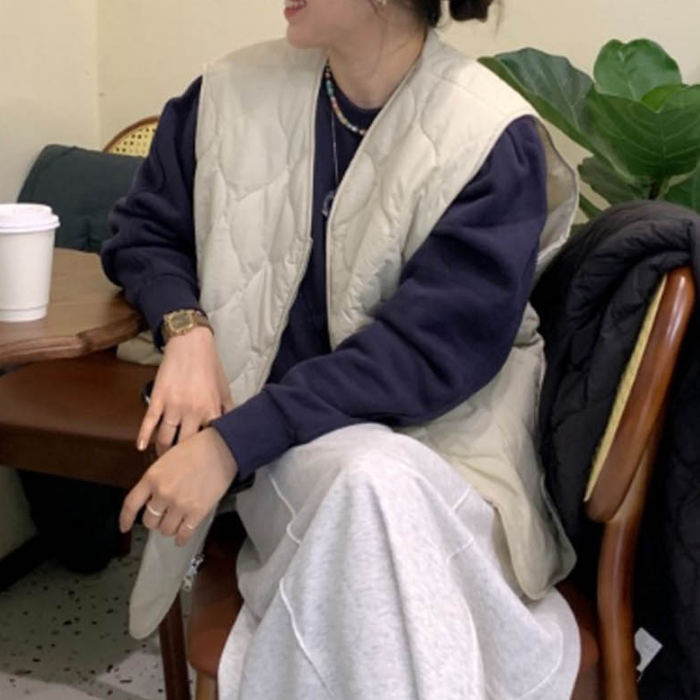 보온 윈터 베스트 누빔 조끼 오버핏 집업 디자인