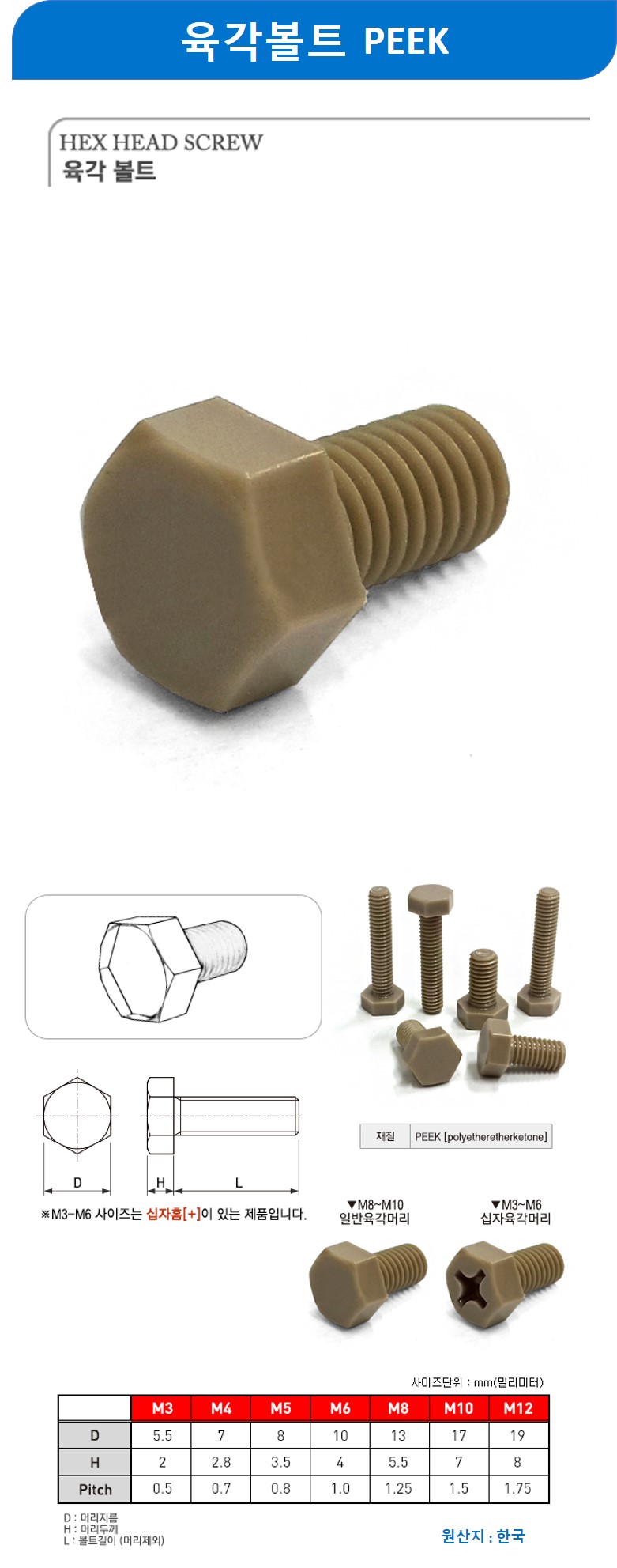 육각볼트 PEEK M10x25mm 20개