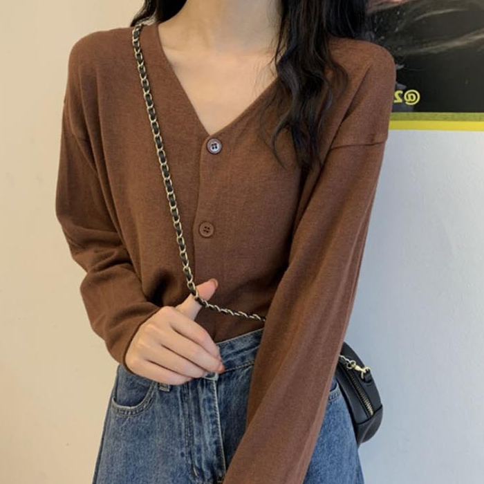 브이넥 긴팔 단추 아우터 소프트한 여성 가디건