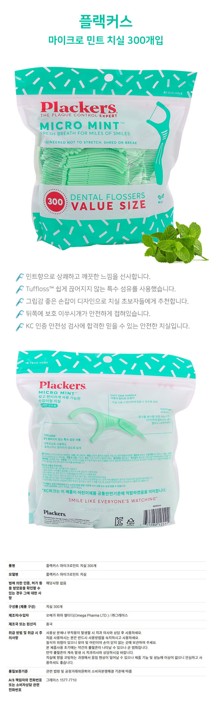 플랙커스 마이크로 민트 일회용치실 300개입