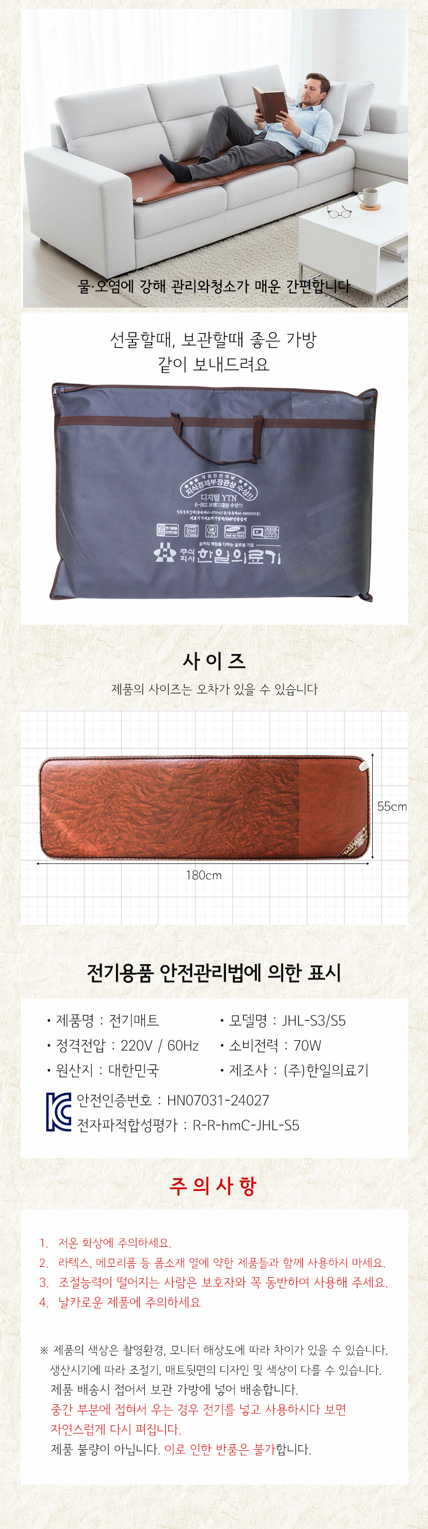 한일의료기 진브라운투톤 쇼파전기방석 5인용180