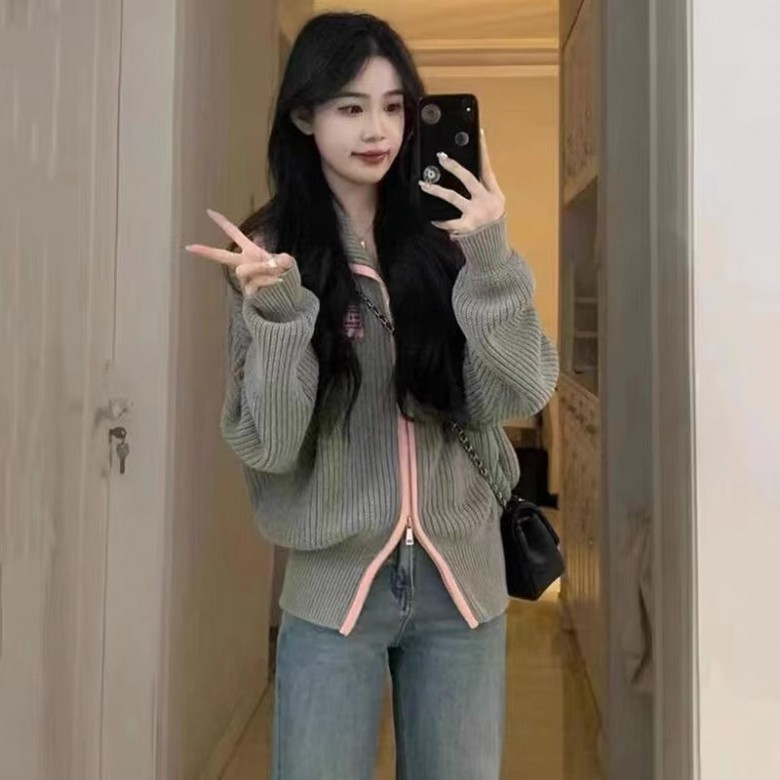 F054731 간절기 초봄 배색 니트 집업 아우터 카디건