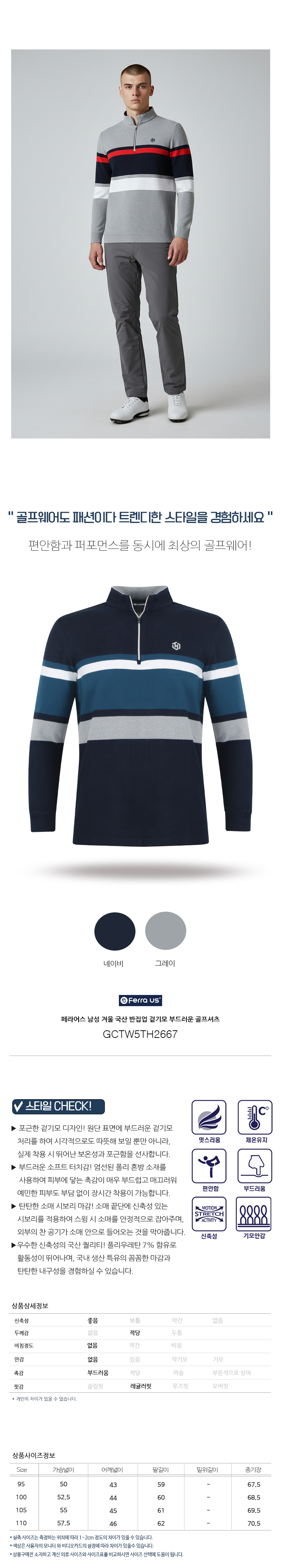 페라어스 남성 겨울 국산 반집업 겉기모 부드러운 골프셔츠 GCTW5TH2667