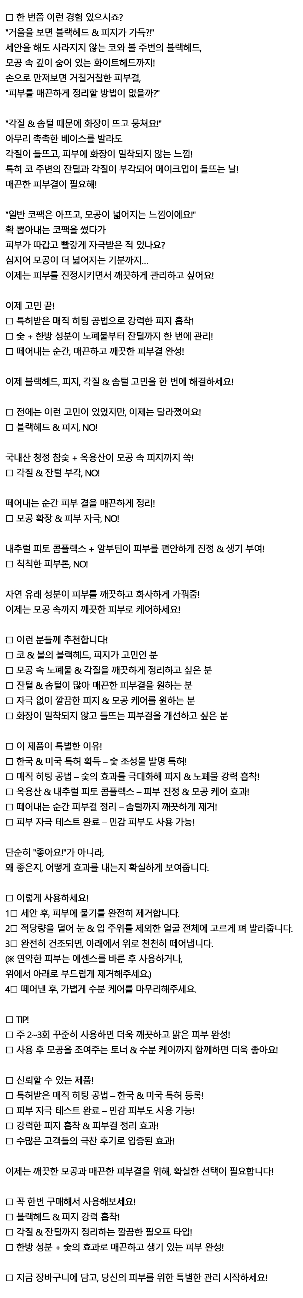 피지흡착 솜털관리까지 한 번에 참숯 팩 필오프 120g