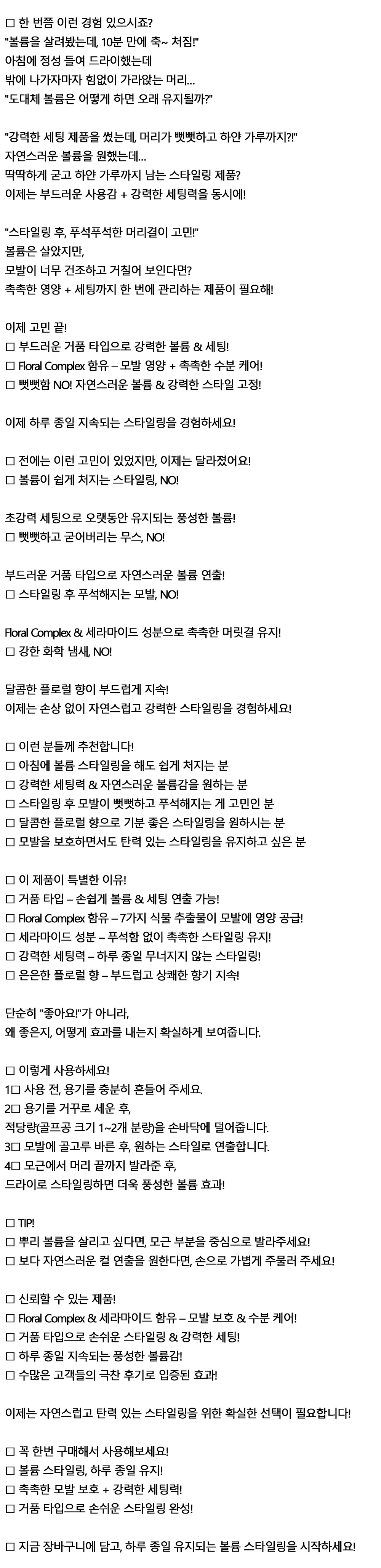 스타일링 영양공급 초강력 볼륨 세팅 헤어 무스 300ml