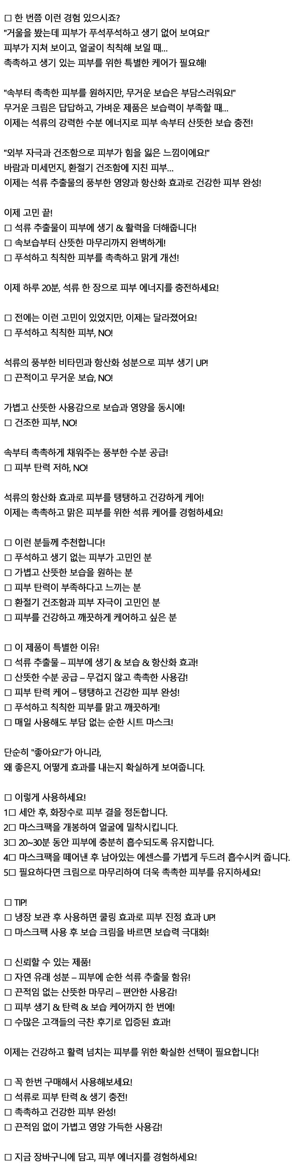 얼굴이 칙칙하고 생기가 없어 보여 석류 마스크팩 10P