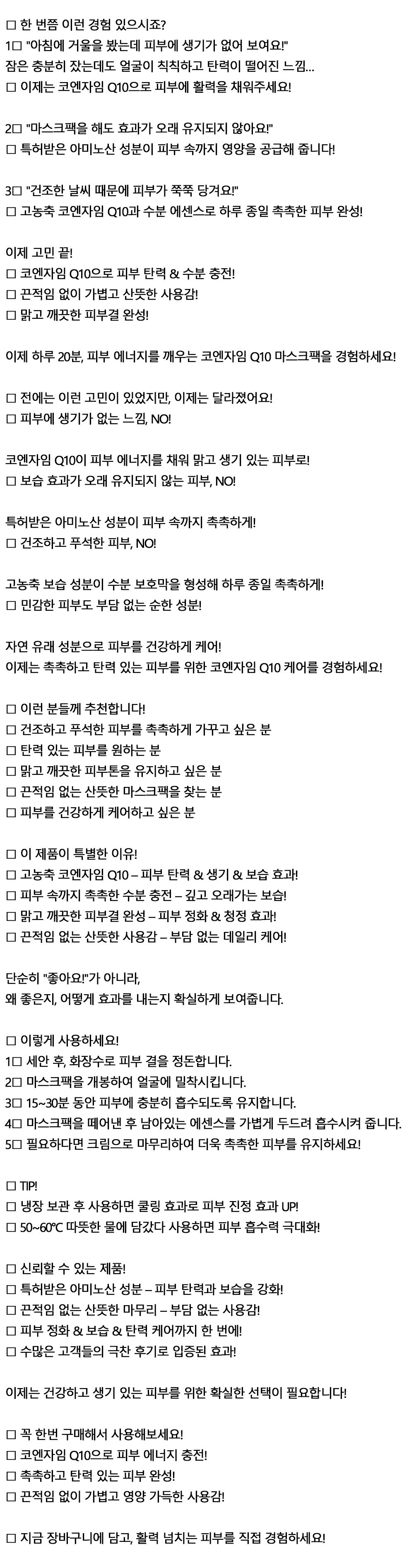 거울을 보면 생기없는 피부가 신경 쓰여 마스크팩 10P