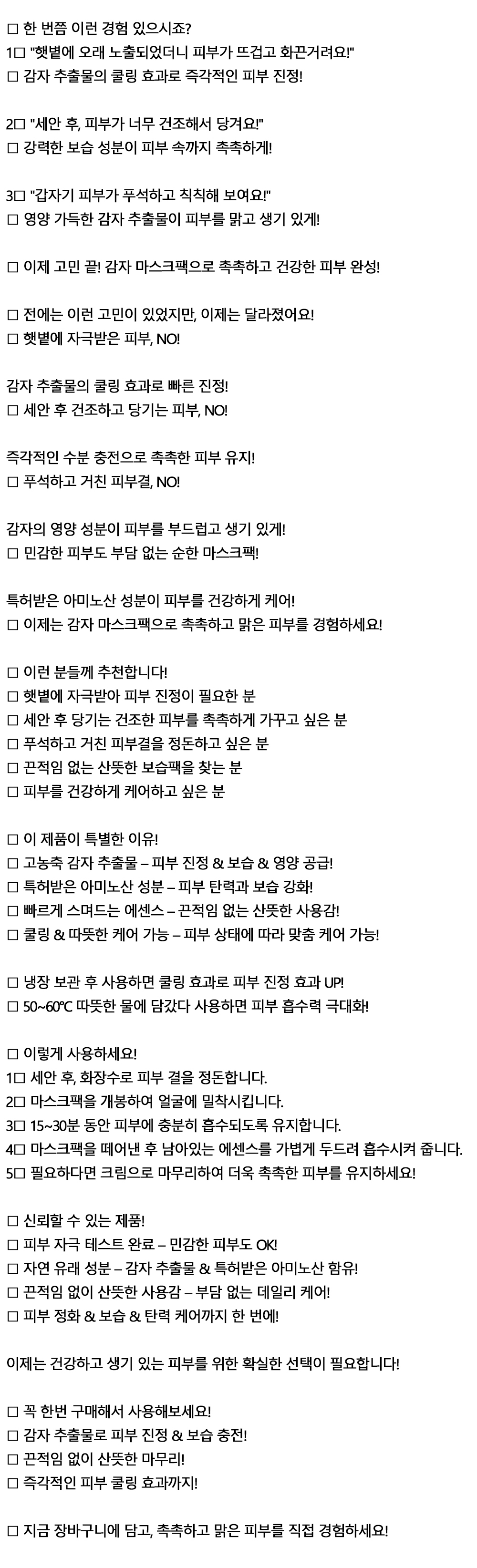 햇볕 많이 받아 피부가 예민해졌어 감자 마스크팩 10P