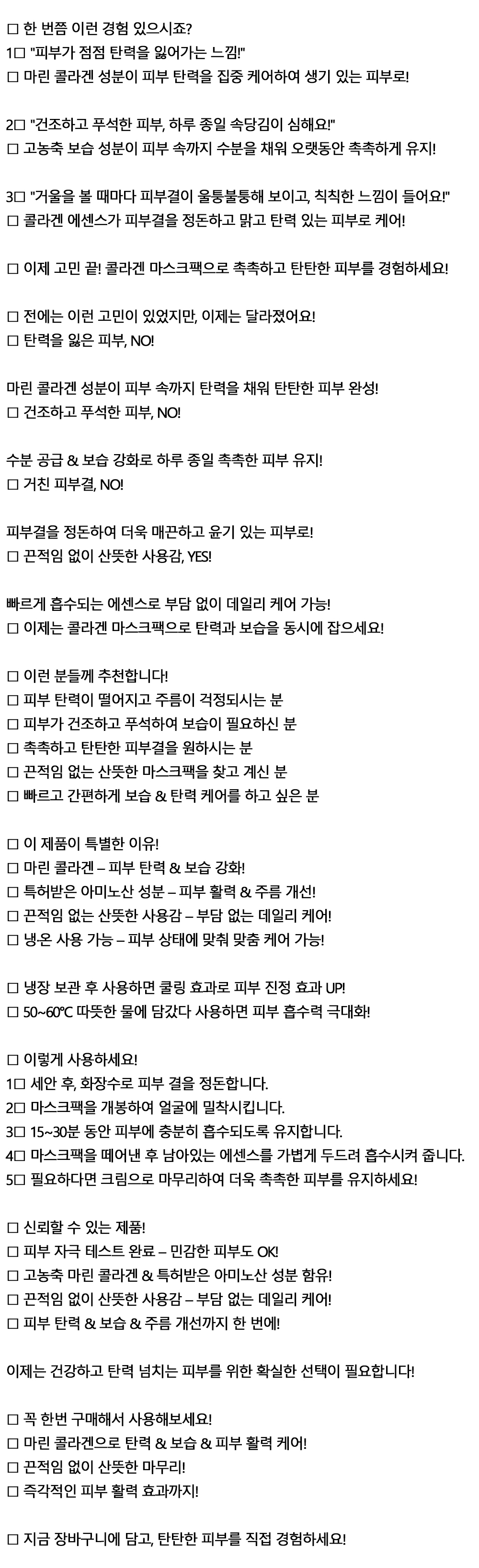 화장이 균일하게 발리지 않을 때 콜라겐 마스크팩 10P