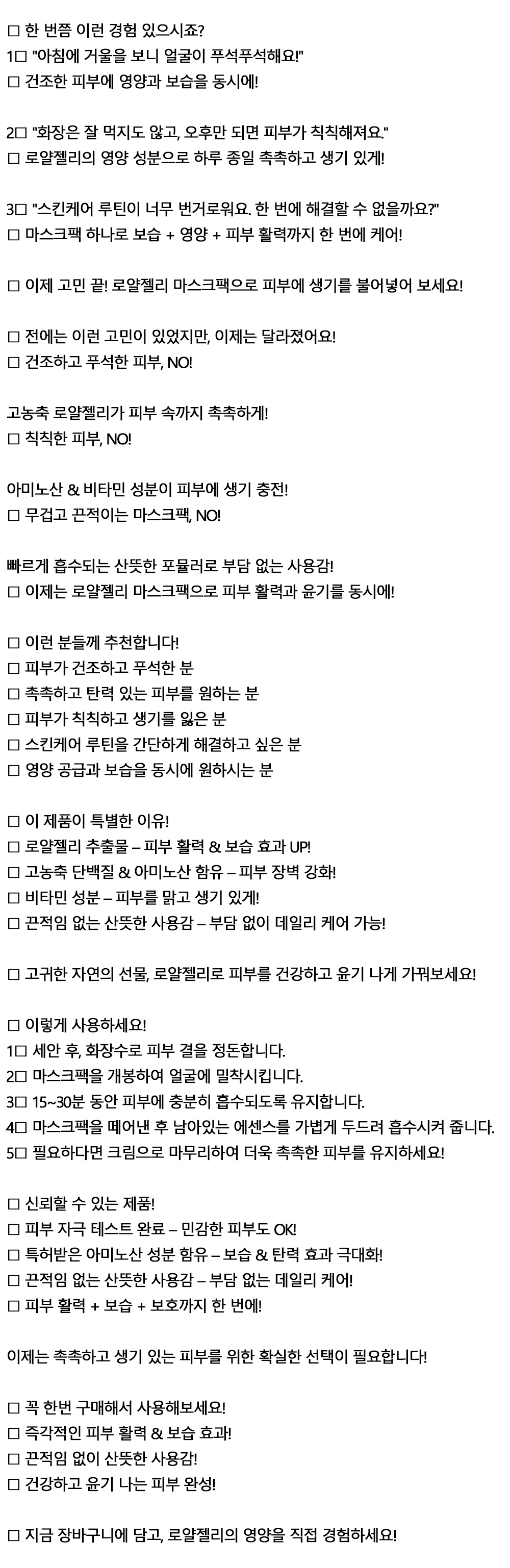 속건조가 심하고 푸석한 느낌 로얄제리 마스크팩 10P