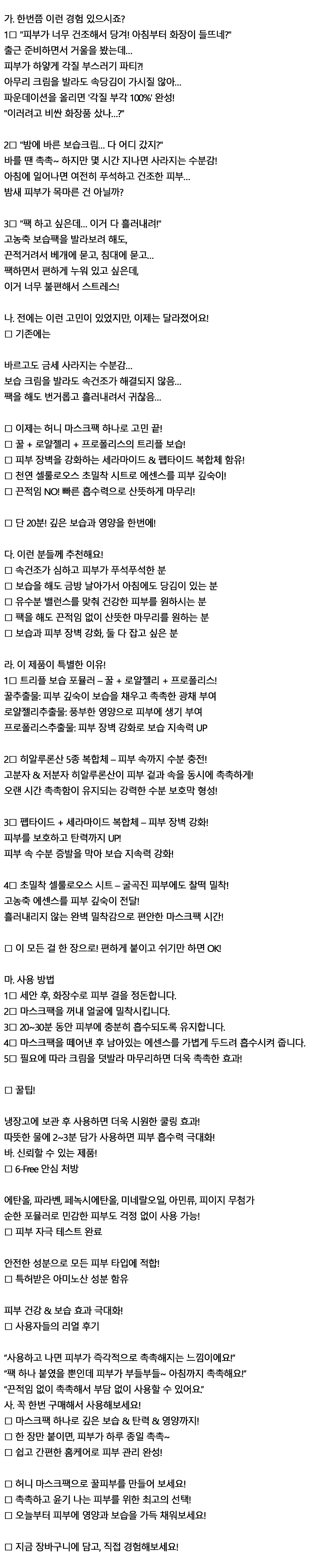 달콤한 영양 폭탄 피부를 위한 허니 꿀 마스크팩 10P