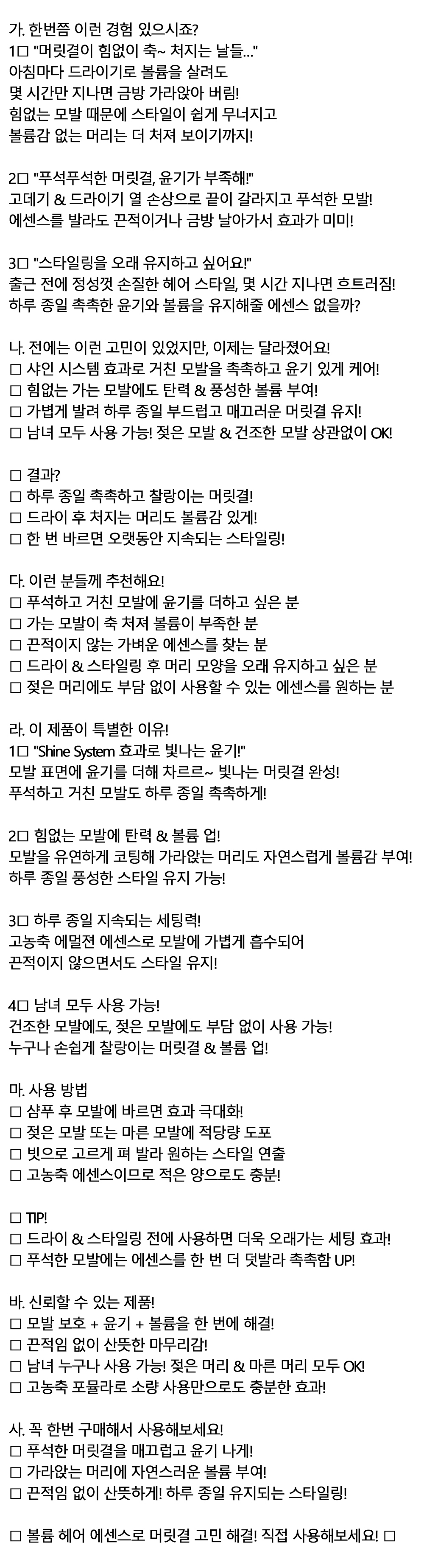 거친 모발 촉촉하고 윤기있게 케어 헤어 에센스 300ml