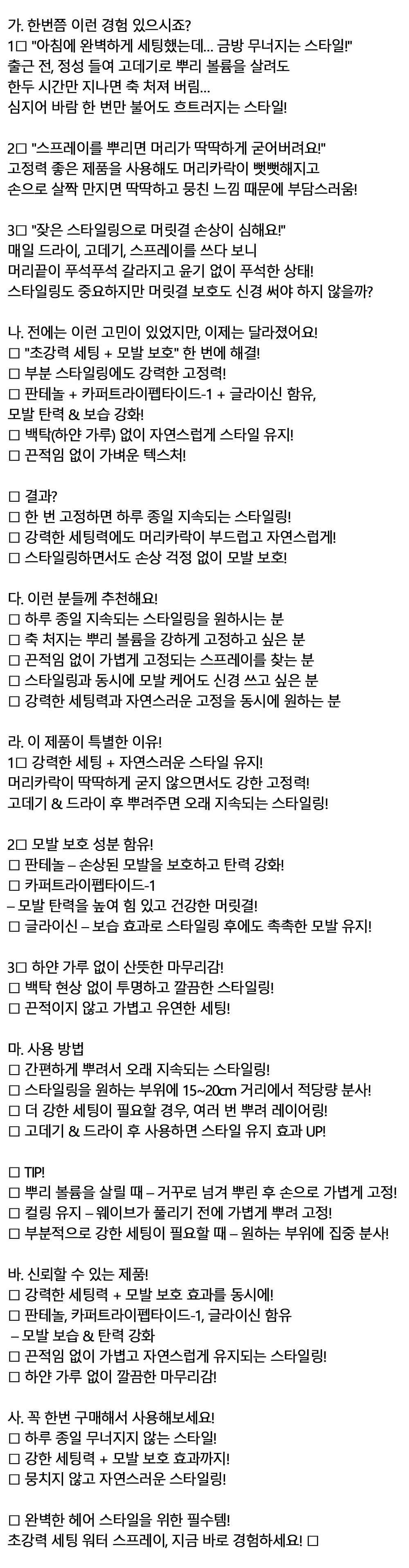 하루 종일 지속되는 스타일링 워터 스프레이 252ml