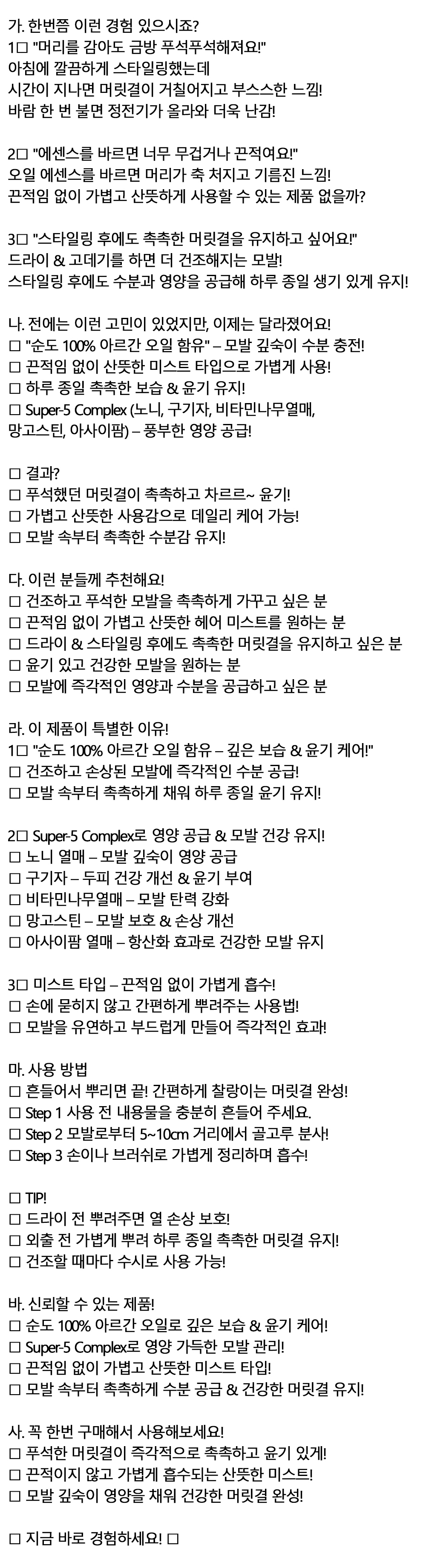 손에 묻히지 않고 간편히 뿌려주는 헤어미스트 200ml