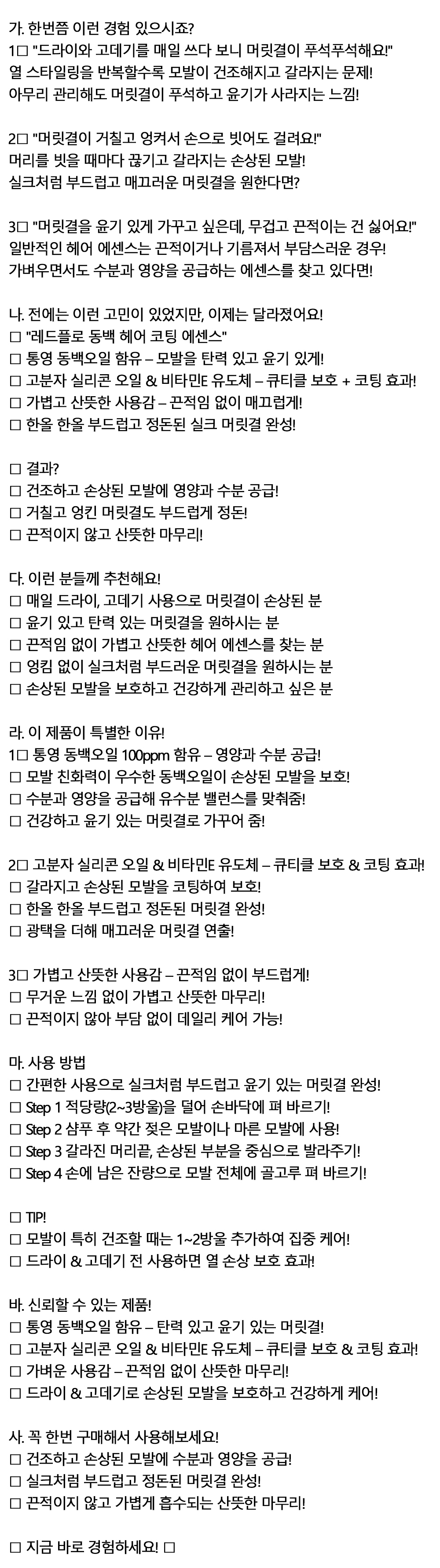 갈라지고 엉켜서 빗질도 어려운순간 헤어에센스 110ml
