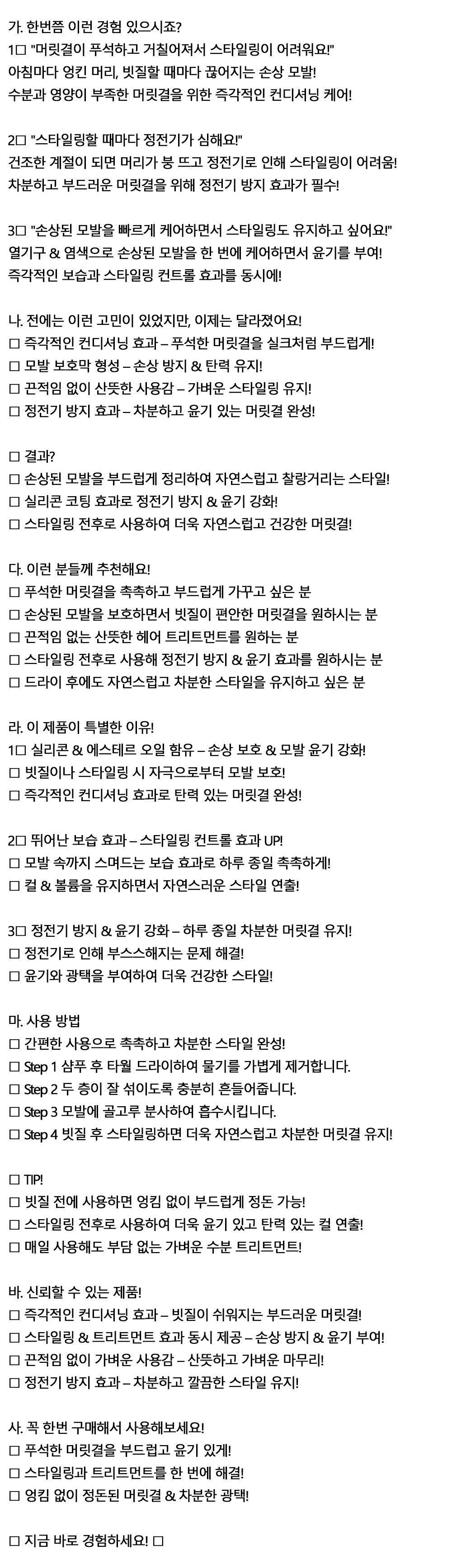 건조한 날씨에 정전기가 심하게 발생 투페이스 130ml