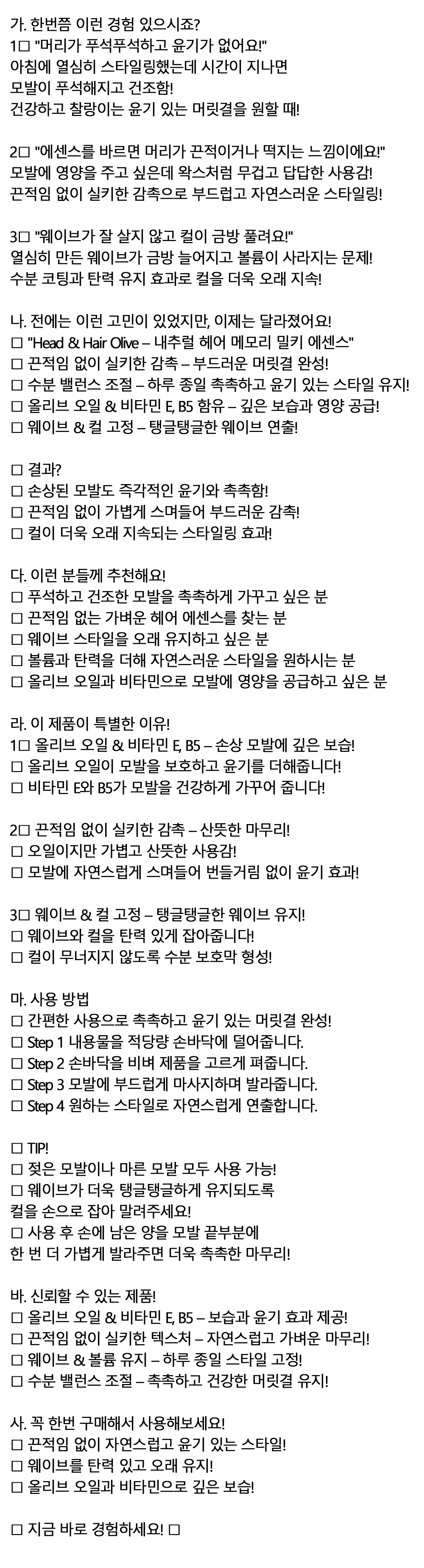 스타일링 후에도 건조 갈라지는 모발 헤어에센스 500g