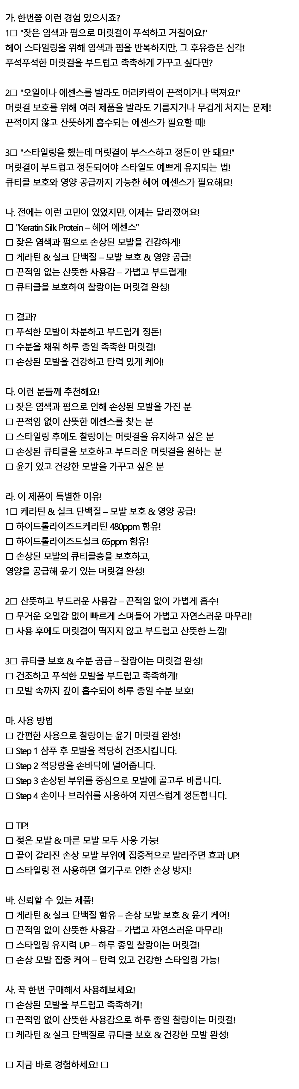 푸석푸석한 머릿결고민 케라틴 실크 헤어에센스 500ml