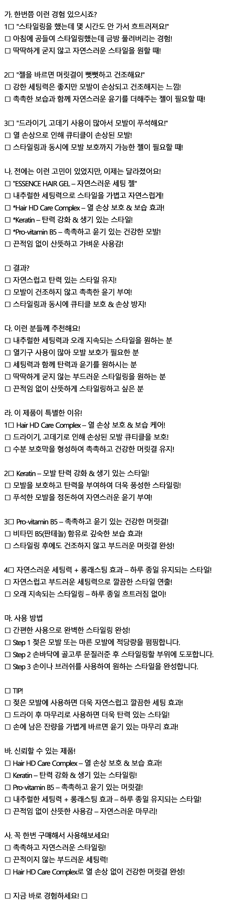 매번 너무 번들거리거나 무거워지는 느낌 헤어젤 500g