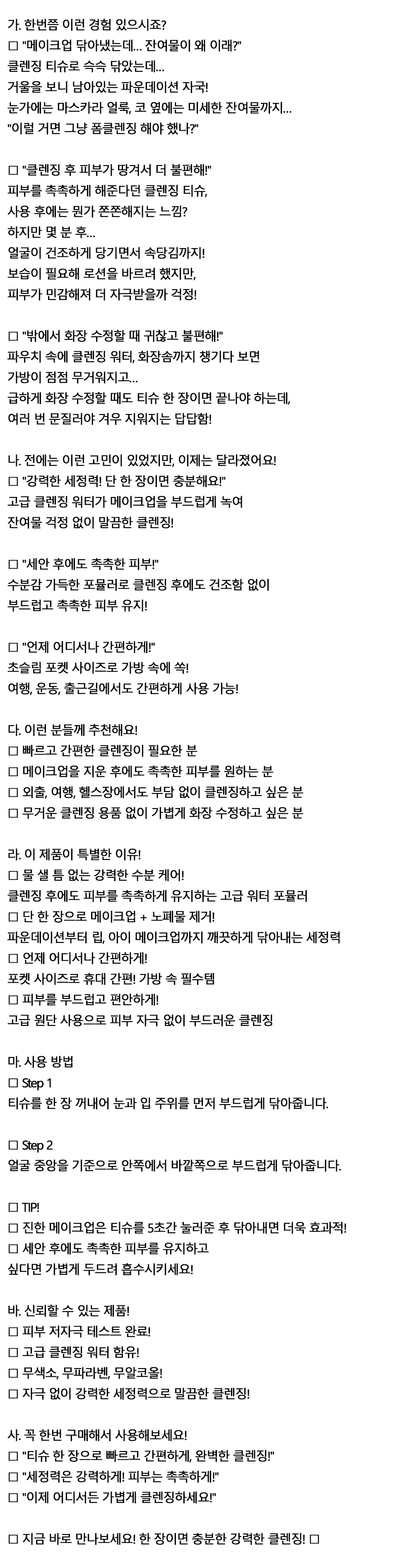 퇴근후 귀찮아서 대충 닦았더니 클렌징티슈 15매 10개