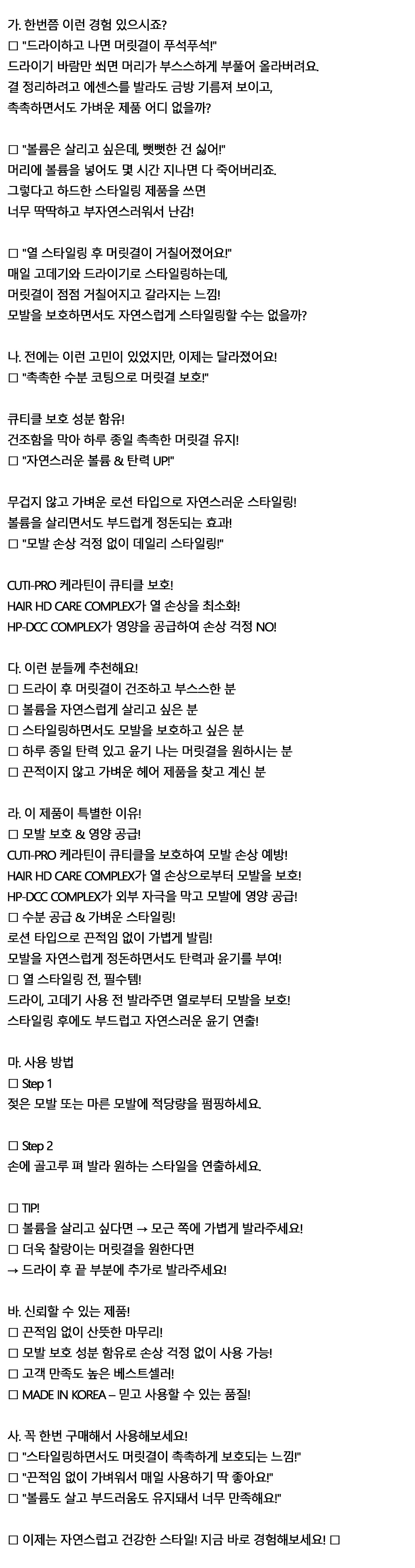 드라이 후 머릿결이 정돈이 안된다 헤어 로션 600ml