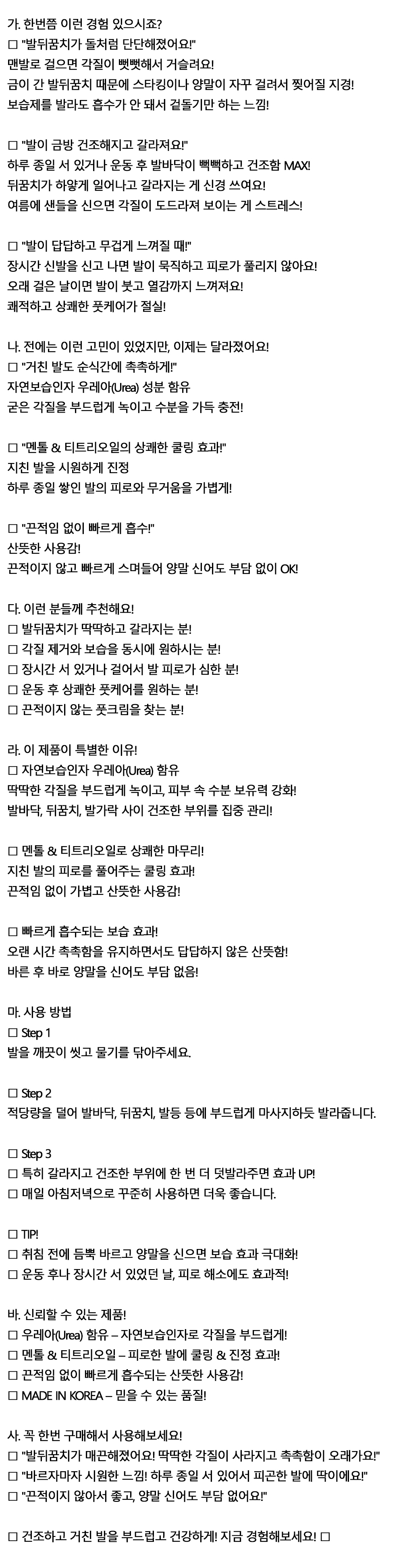 바르면 답답 안바르면 건조한 딜레마 풋크림 100ml