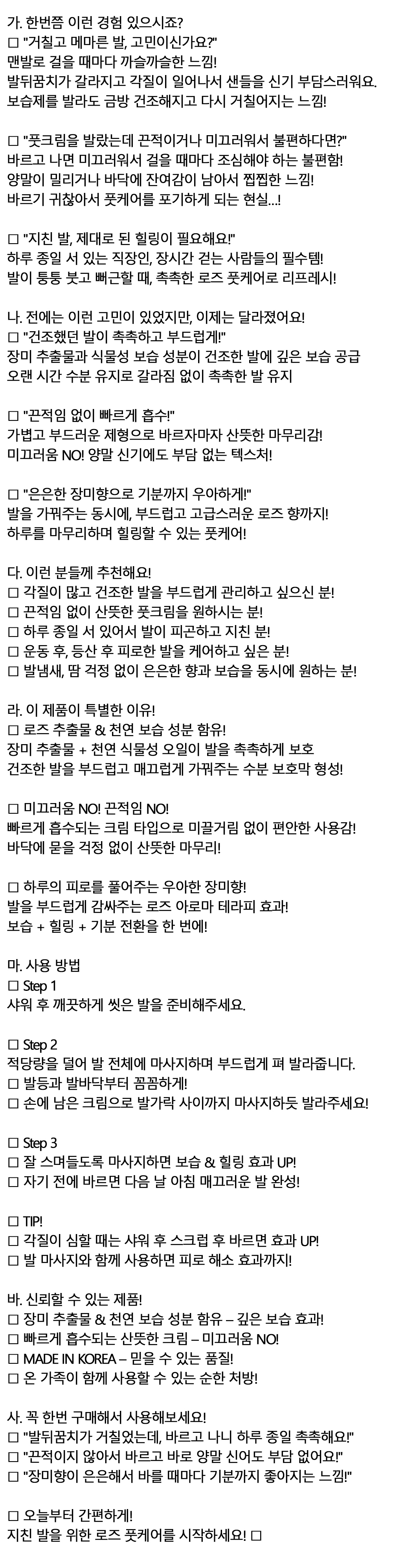 건조한 발을 오랫동안 매끄럽게 장미 풋크림 100ml