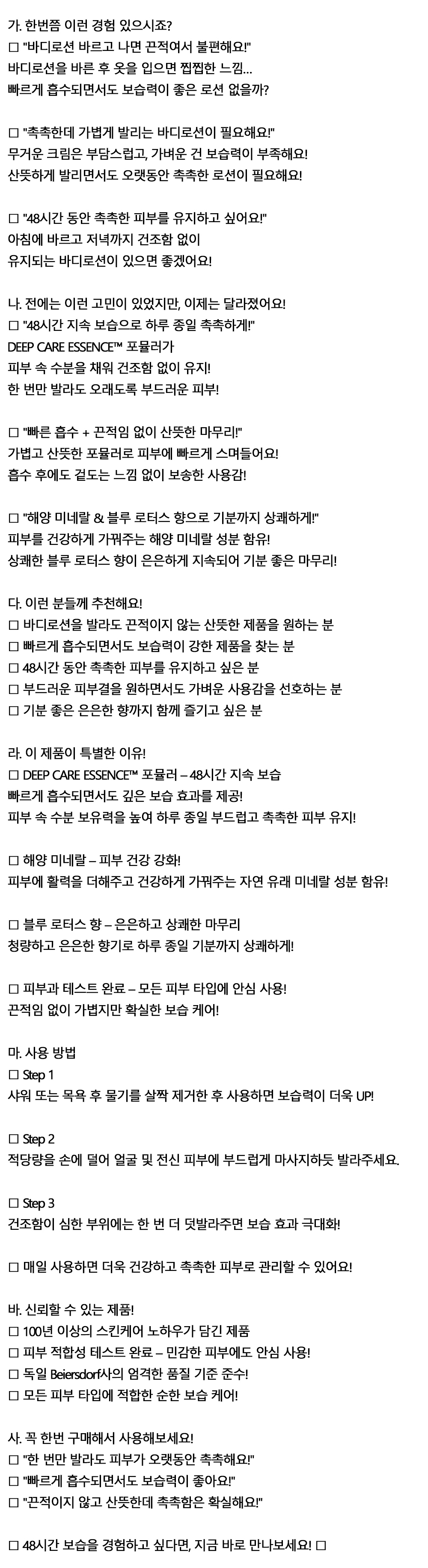 해양 미네랄 48시간 동안 촉촉한 피부 바디로션 400ml