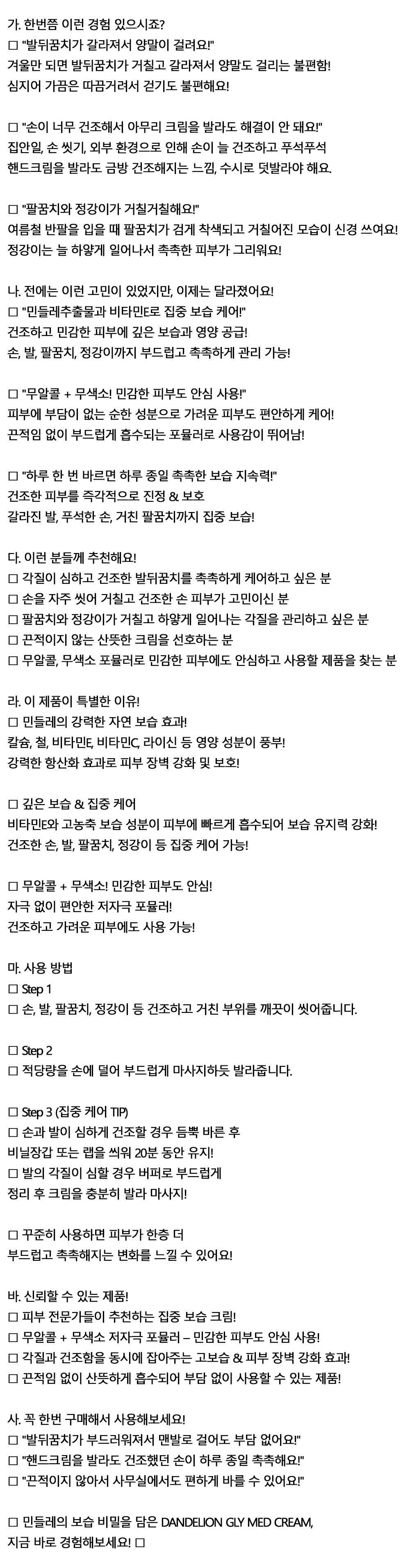 거친 손 건조한 발뒤꿈치를 촉촉하게 케어 크림 120ml