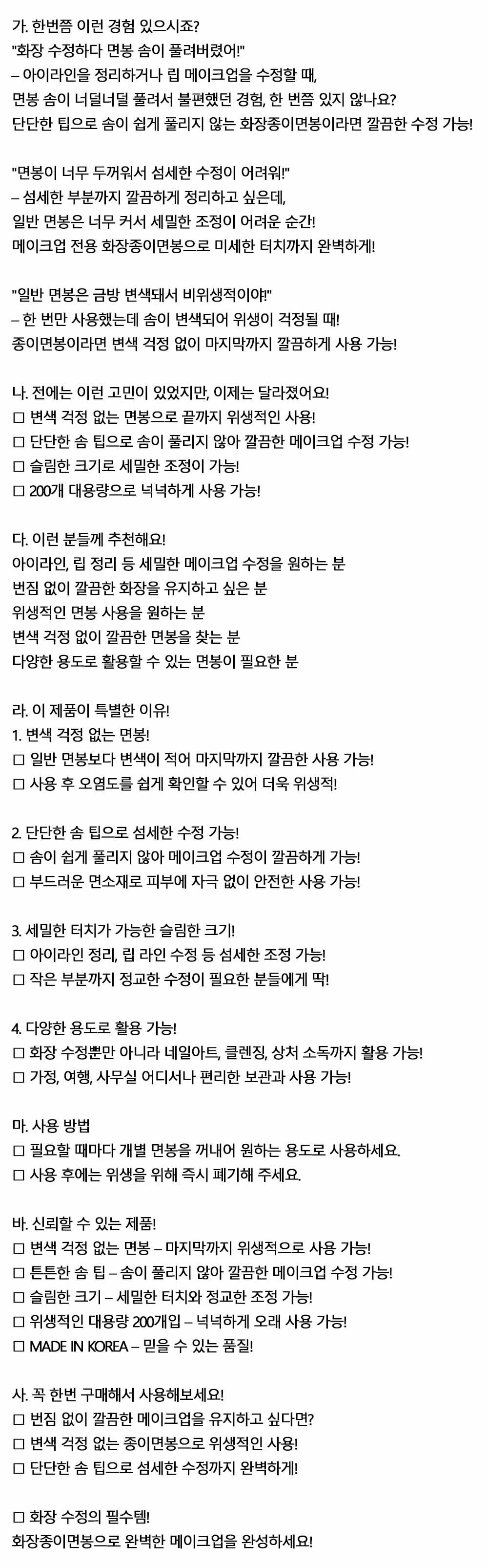 아이라인정리 립라인수정 화장용 종이면봉 200입 10통