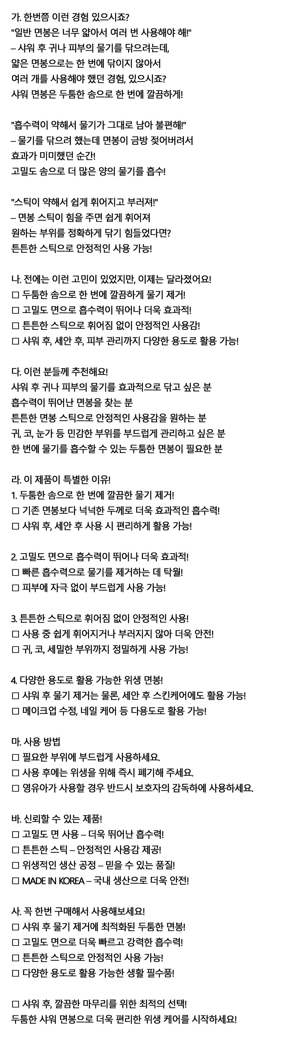 두툼한 솜으로 깔끔한 물기제거 샤워면봉 100입 10통