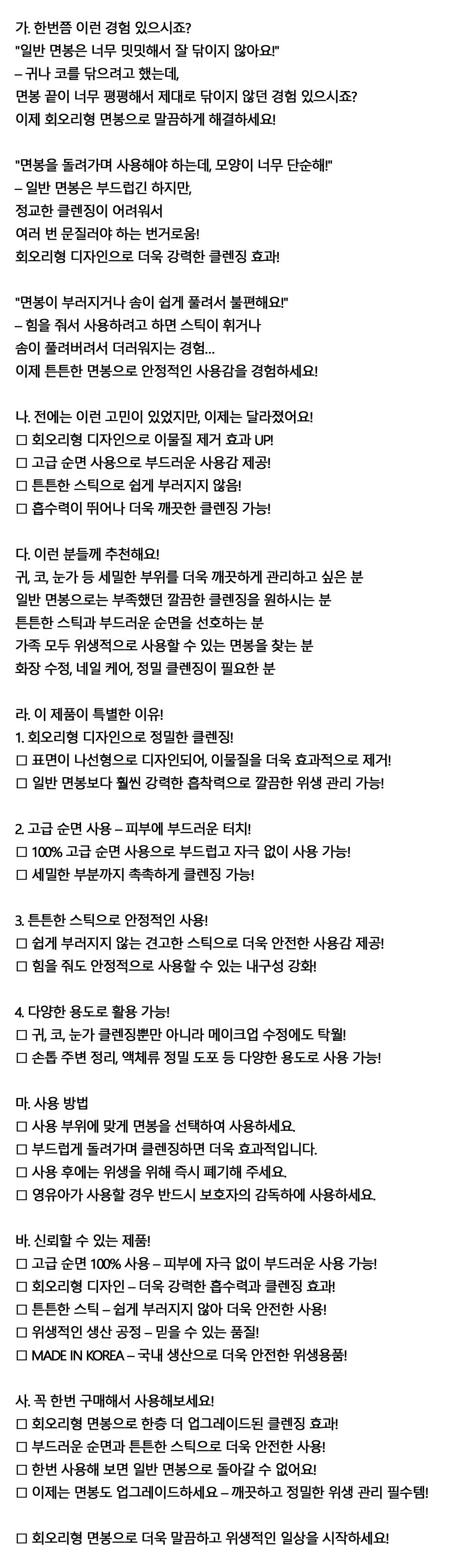 고급순면 부드러운 사용감 회오리형 면봉 100입 10통