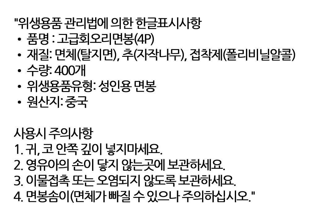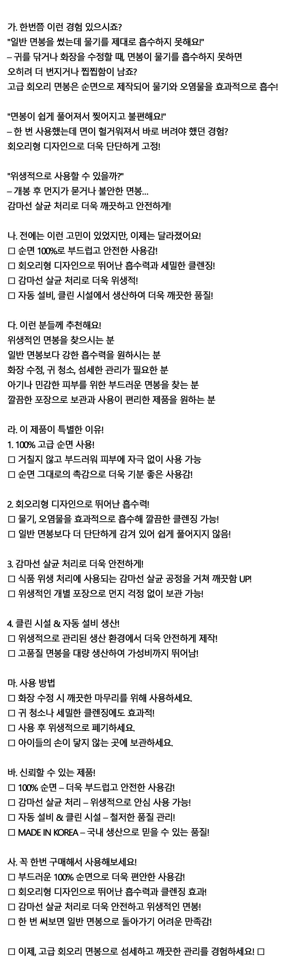 물기와 오염물 효과적흡수 회오리면봉 4P 100입 4봉