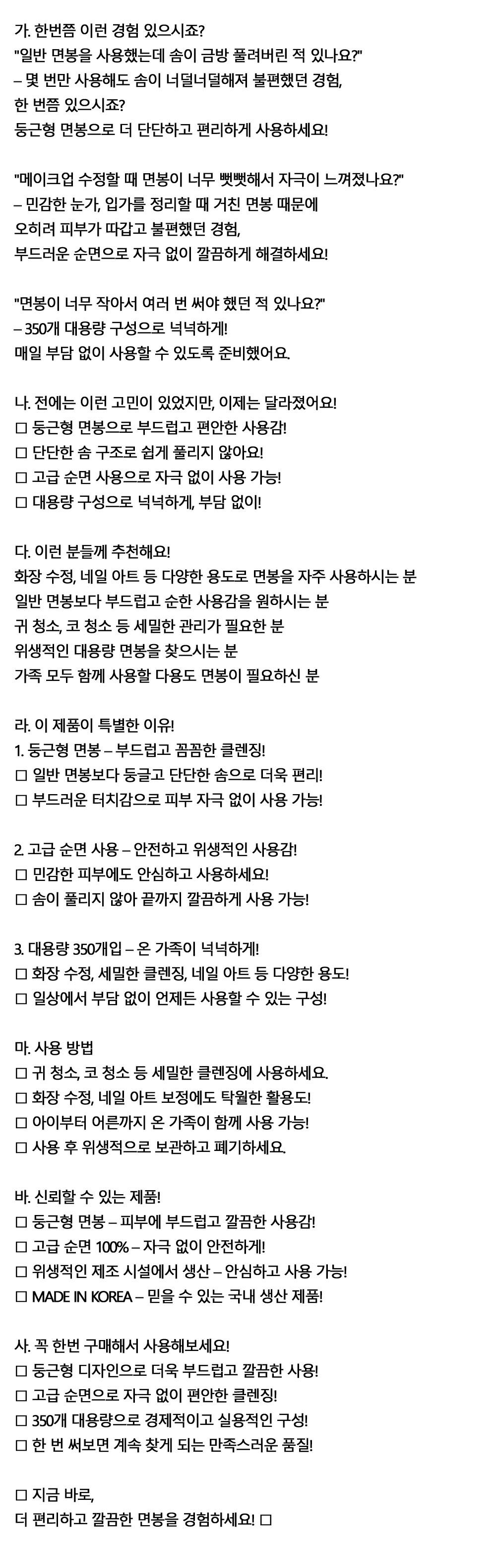 둥근형 디자인 더욱 부드럽고 깔끔한 면봉 350입 6통