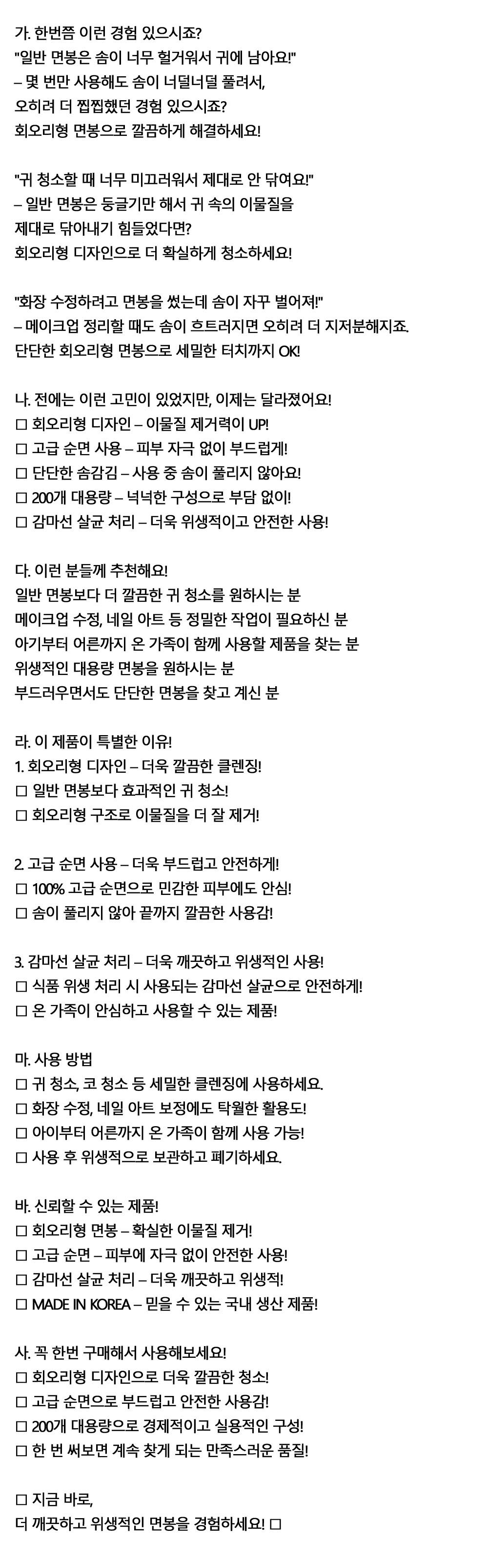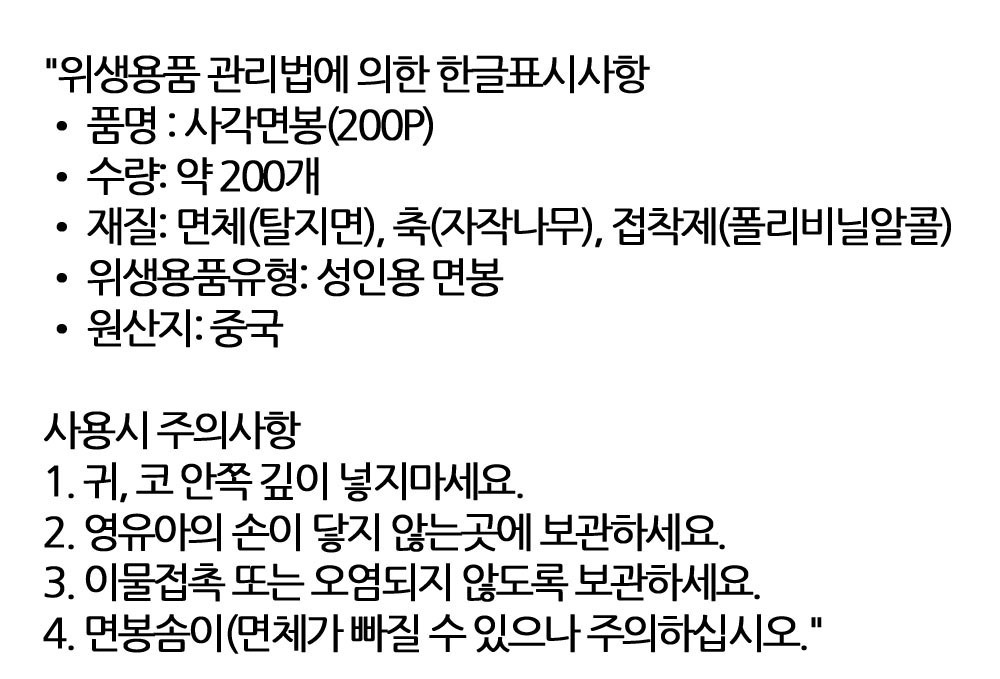 사용 중 솜이 풀리지 않아요 위생 사각면봉 200입 5통