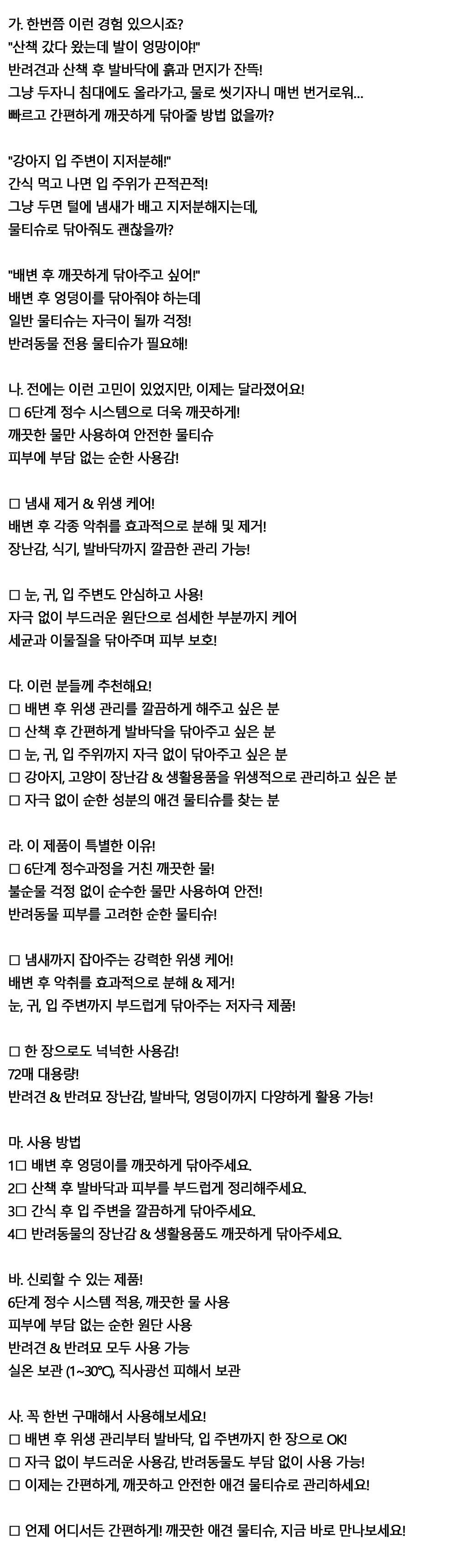 냄새까지 잡아주는 강력한 위생 케어 애견물티슈 72매