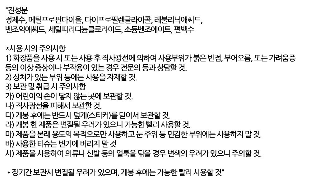 아래 상품정보는 옵션 및 사은품 정보 등 실제 상품과 차이가 있을수 있습니다