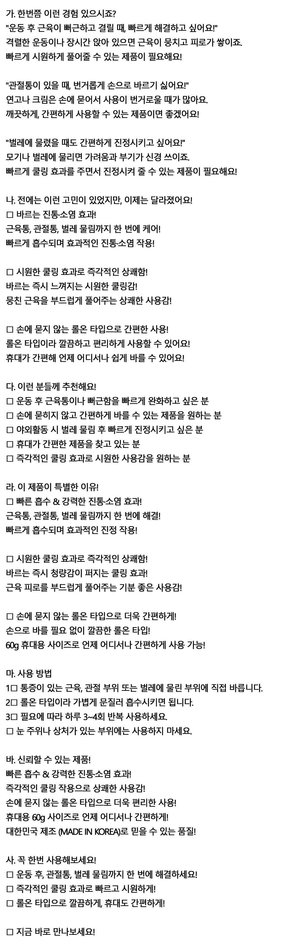 운동 후 근육이 뻐근하고 결릴 때 시원하게 롤온 60g