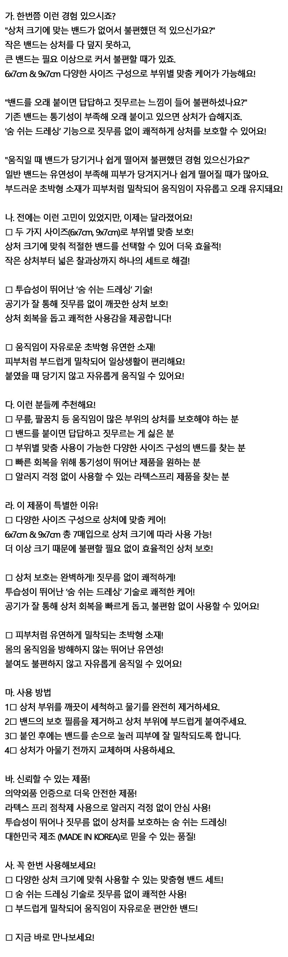 숨 쉬는 드레싱 기능 짓무름 없이 쾌적하게 밴드 7입