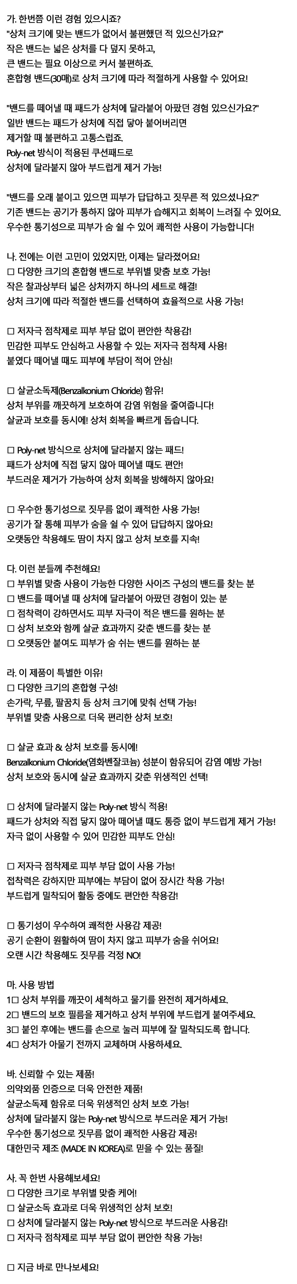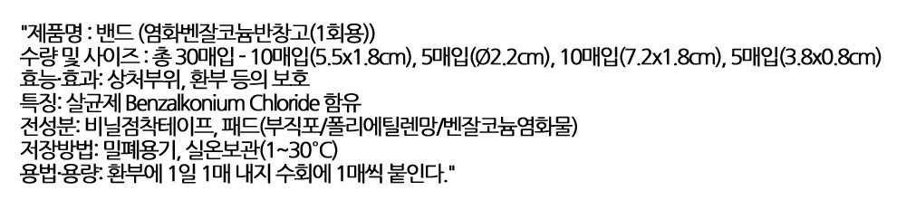 피부가 숨 쉴 수 있어 쾌적한 사용 혼합형 밴드 30매