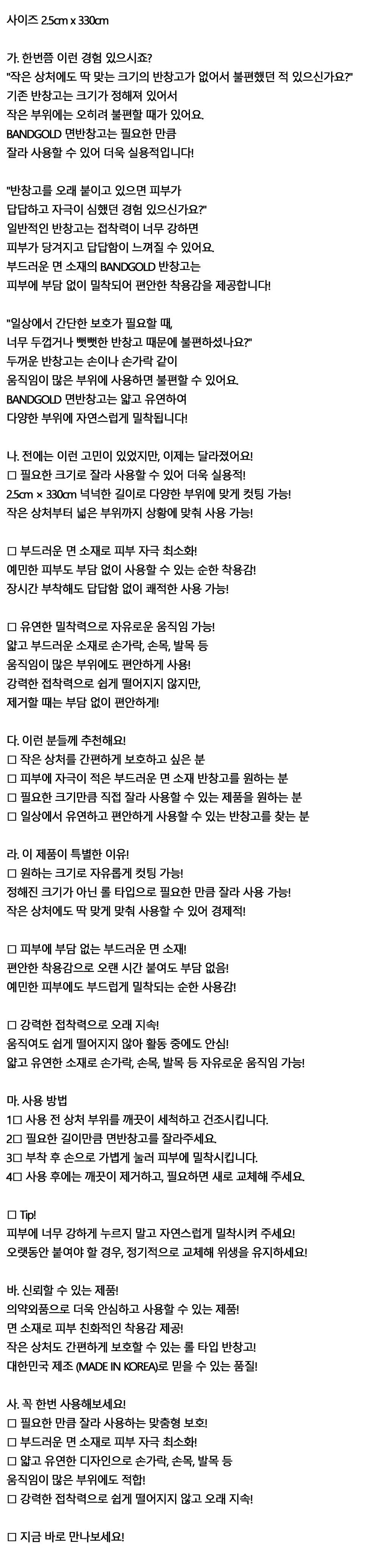 유연한 밀착력 자유로운 움직임 가능 면반창고 2.5cm