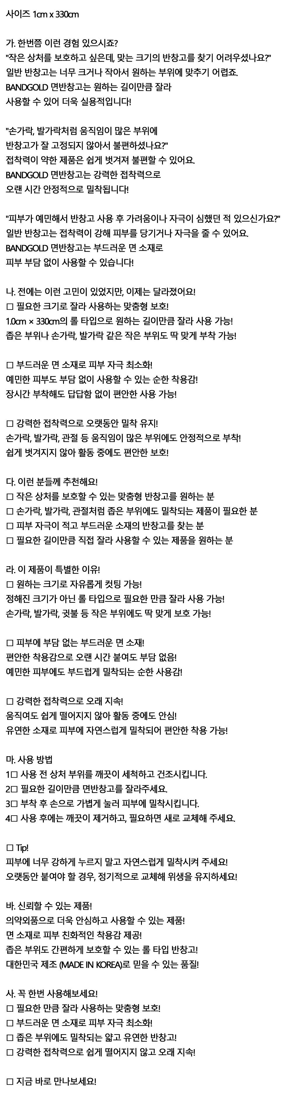 필요한 크기로 잘라 사용하는 맞춤형 면반창고 1.0cm