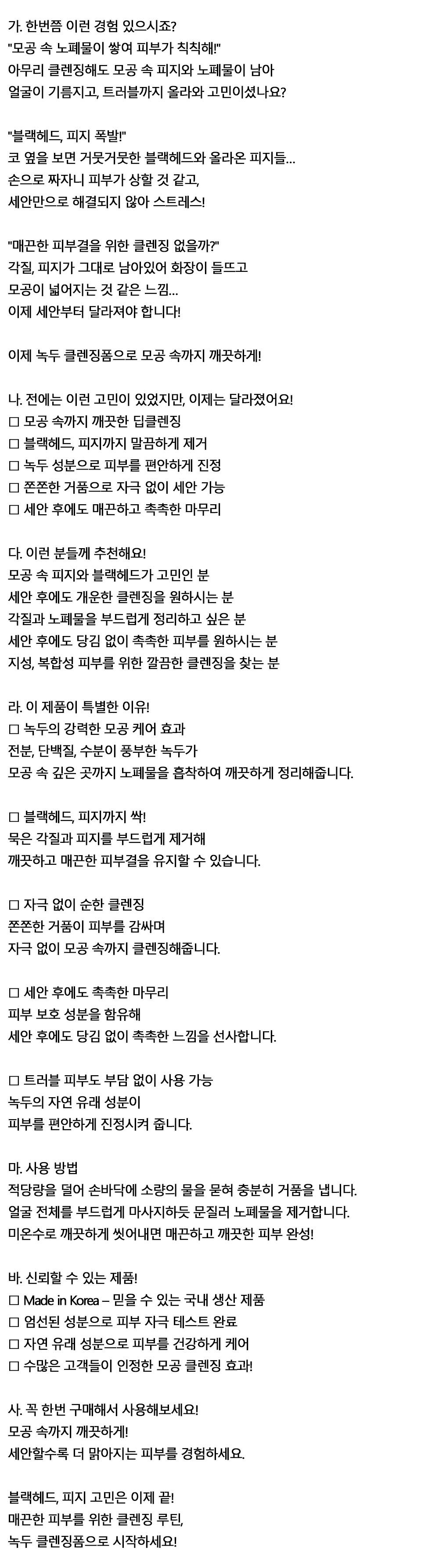 매끈한 피부결 위한 클렌징없을까 녹두 클렌징폼 120g